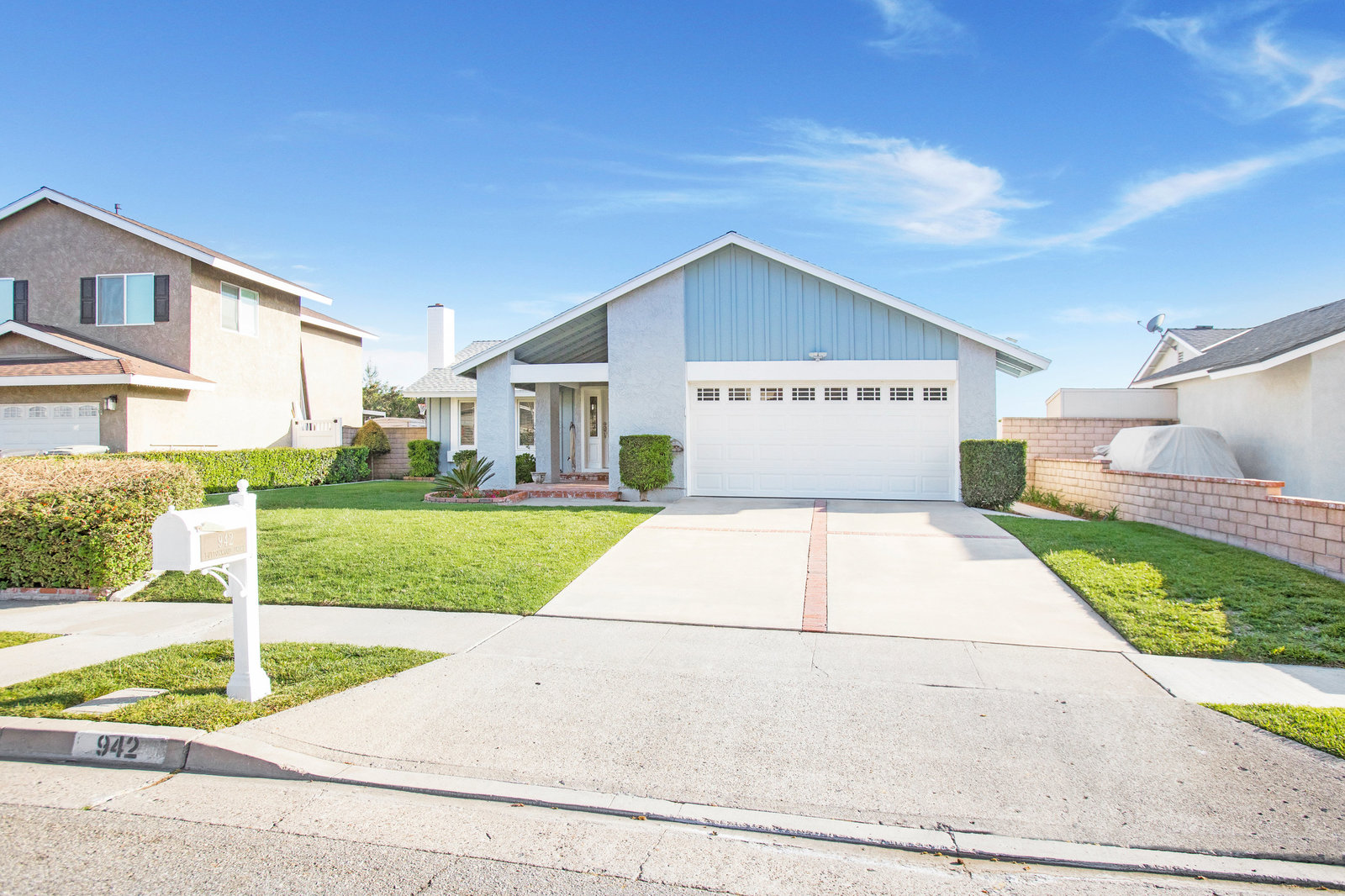 Located in Brea, this thoughtfully updated 3-bedroom, 2-bathroom home offers comfort, style, and an unbeatable location. Inside, wood laminate flooring leads to a spacious living room centered around a classic brick fireplace. The contemporary kitchen features quartz countertops, soft-close cabinets, stainless steel appliances—including a five-burner gas stove—and a cozy dining area. Plantation shutters throughout the home provide controlled natural lighting, complemented by dual-pane windows, recessed lighting, and a separate flex space for added versatility. The primary bedroom offers two closets and a private ensuite bathroom with a sliding glass tub/shower combo, while the two additional bedrooms feature ample closet space and bright interiors with their own shared hallway bathroom. Recent upgrades within the past few years include a new roof, fresh interior paint, updated bedroom and living room flooring, and a fully modernized HVAC system with new ductwork, condenser, furnace, and line set. Dual doors from the living room open to a peaceful backyard retreat enhanced with a custom drip irrigation system—perfect for future gardens. A curved walkway surrounds part of the home, offering views of the backyard's grassy areas that overlook the neighborhood. The attached garage adds incredible functionality with a workbench, shelving, built-in cabinetry, lofted storage, and more. The home is equipped with 18 professionally installed solar panels, regularly maintained and saving thousands on electricity bills. Solar panels will be paid off before close of escrow, providing the new owner with a fully paid-off, energy-efficient system. Situated in the desirable Brea Olinda Unified School District and just minutes from Downtown Brea, the Brea Mall, restaurants, parks, and 57 Freeway access, this home delivers the ideal blend of upgraded living and everyday convenience. Schedule your private tour today!